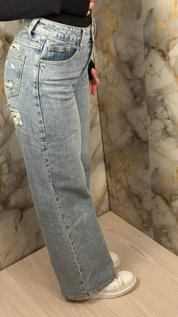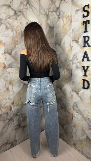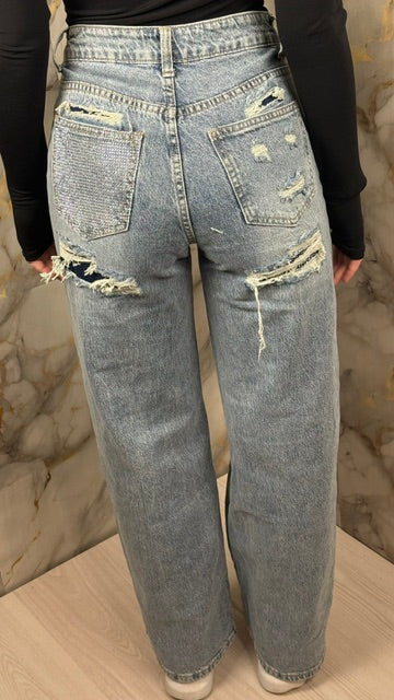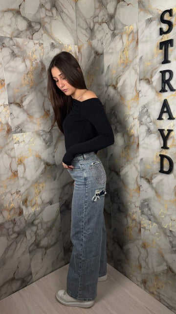 Sul retro, un dettaglio luminoso applicato sulle tasche aggiunge un accento raffinato e discreto, pensato per emergere con equilibrio e carattere.