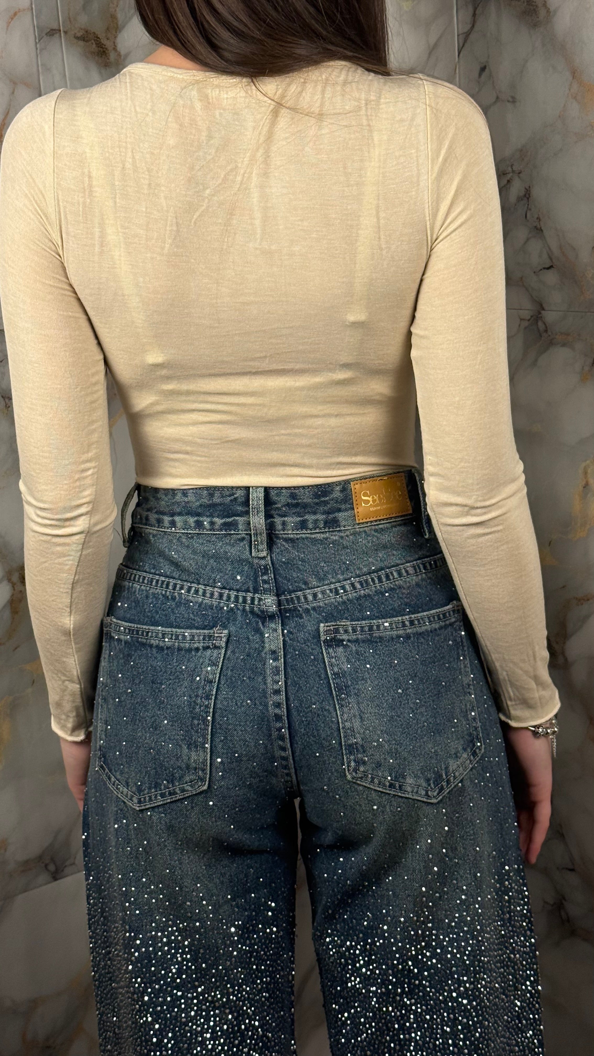Perfetto con denim, pantaloni a vita alta o sotto giacche e blazer